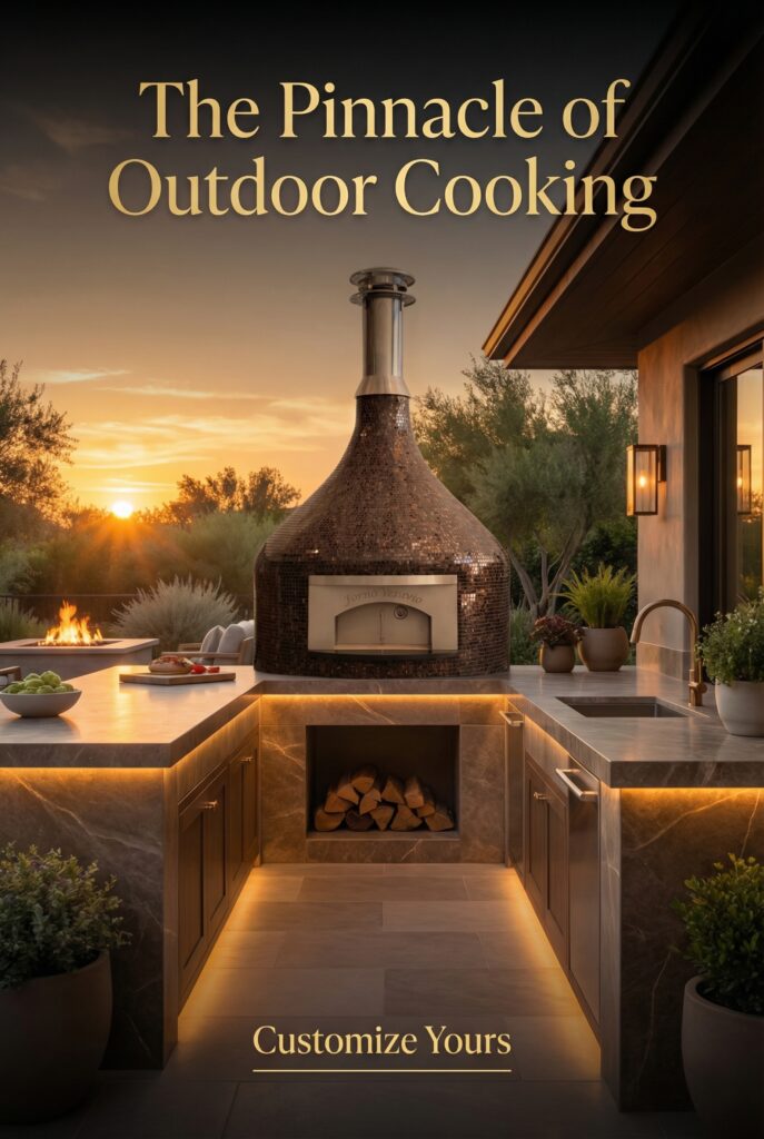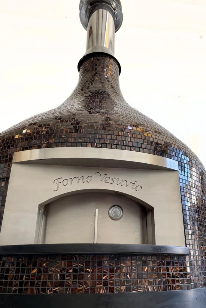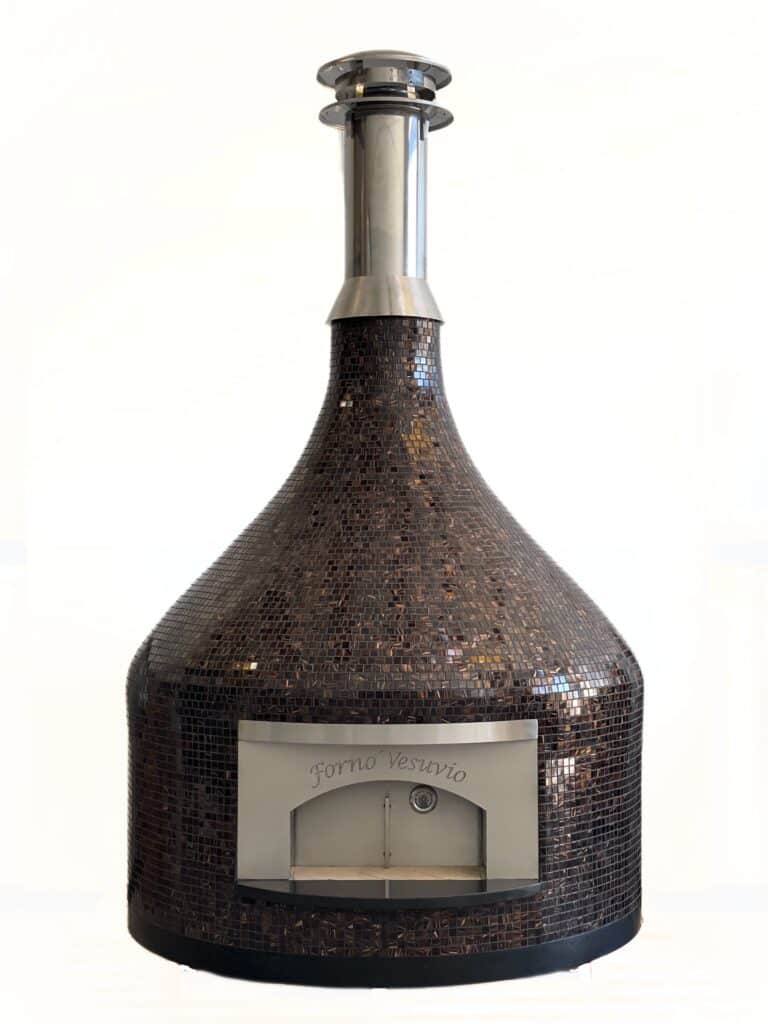 Our Nardona Vesuvio Pizza Oven is our largest and NEWEST model. It is also our most impressive of our pizza ovens. It stands at 100″ including the pipe. This oven has a beautiful glass tile finish and a traditional Naples style center vent. This makes it a stunning addition to any cooking space. And it has our own modern spin making it slightly different than a traditional Napoli style oven which you are going to love. This sets us apart from all the others.