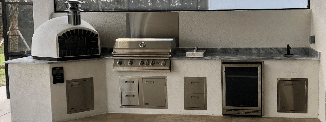 You can order individual items for your own build or reach out to our team for a full outdoor kitchen quote. We can provide a fully finished local outdoor kitchen installed in the Tampa Bay Area. We can also build and ship varying stages of finished kitchens from just aluminum framing, to framing with water resistant hardboard. For a more hands on approach, email us with a drawing of what you have in mind.